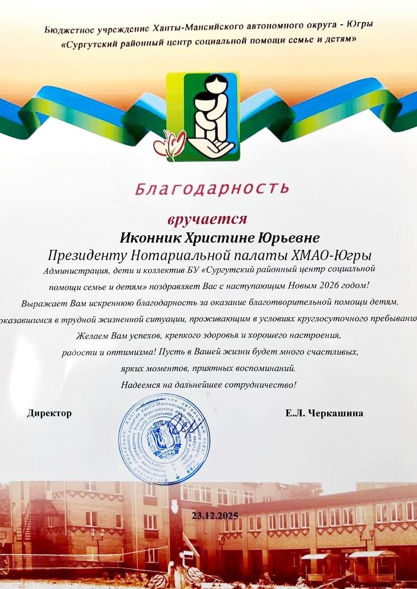 Нотариальная палата Ханты-Мансийского автономного округа-Югры перед Новым годом и Рождеством провела серию благотворительных акций для детей, подарив им сладкие подарки и праздничное настроение.