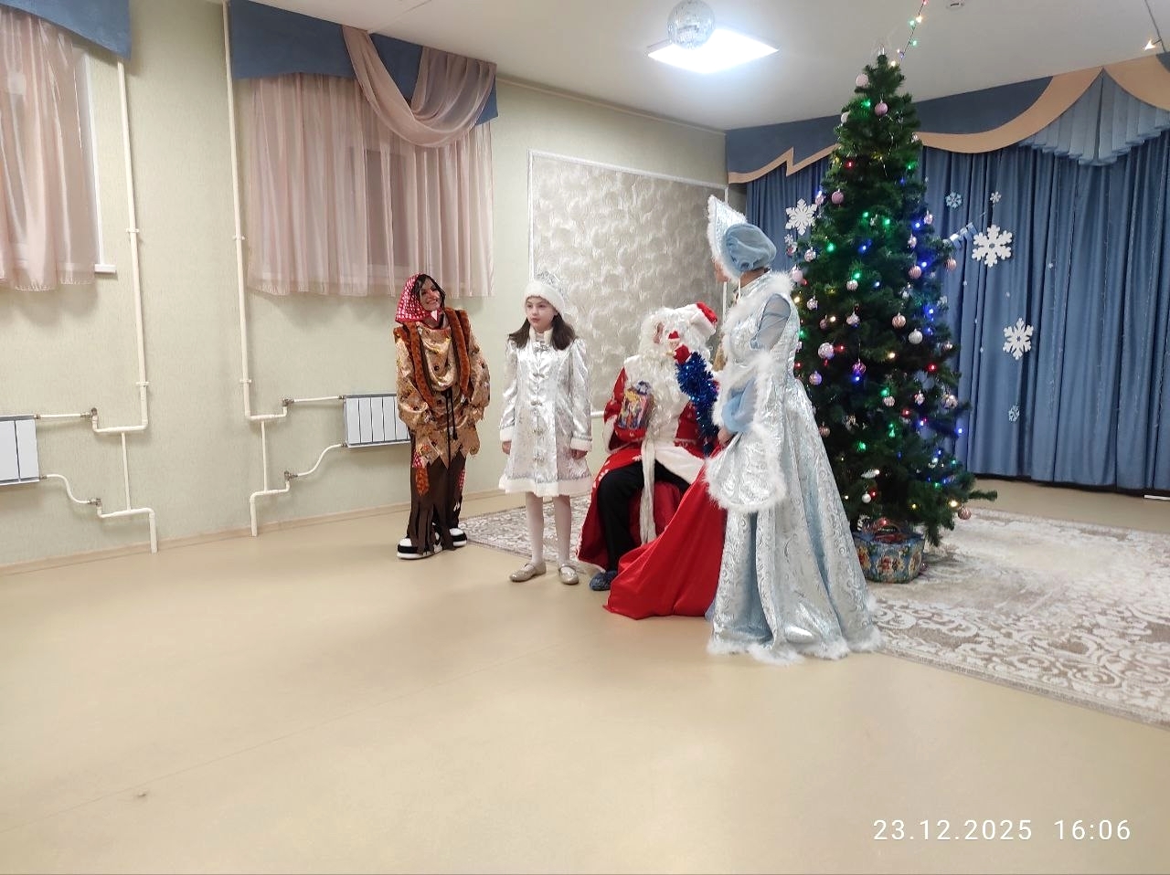 Нотариус Солнечного Олеся Кушнова в роли Снегурочки, а сотрудники нотариальной конторы – в роли Деда Мороза и Бабы Яги совместно с представителями сургутского центра «Наследие» поздравили с праздниками детей из семей, попавших в трудную жизненную ситуацию на детском утреннике, организованном в Сургутском районном центре социальной помощи семьей и детямв поселке Барсово.