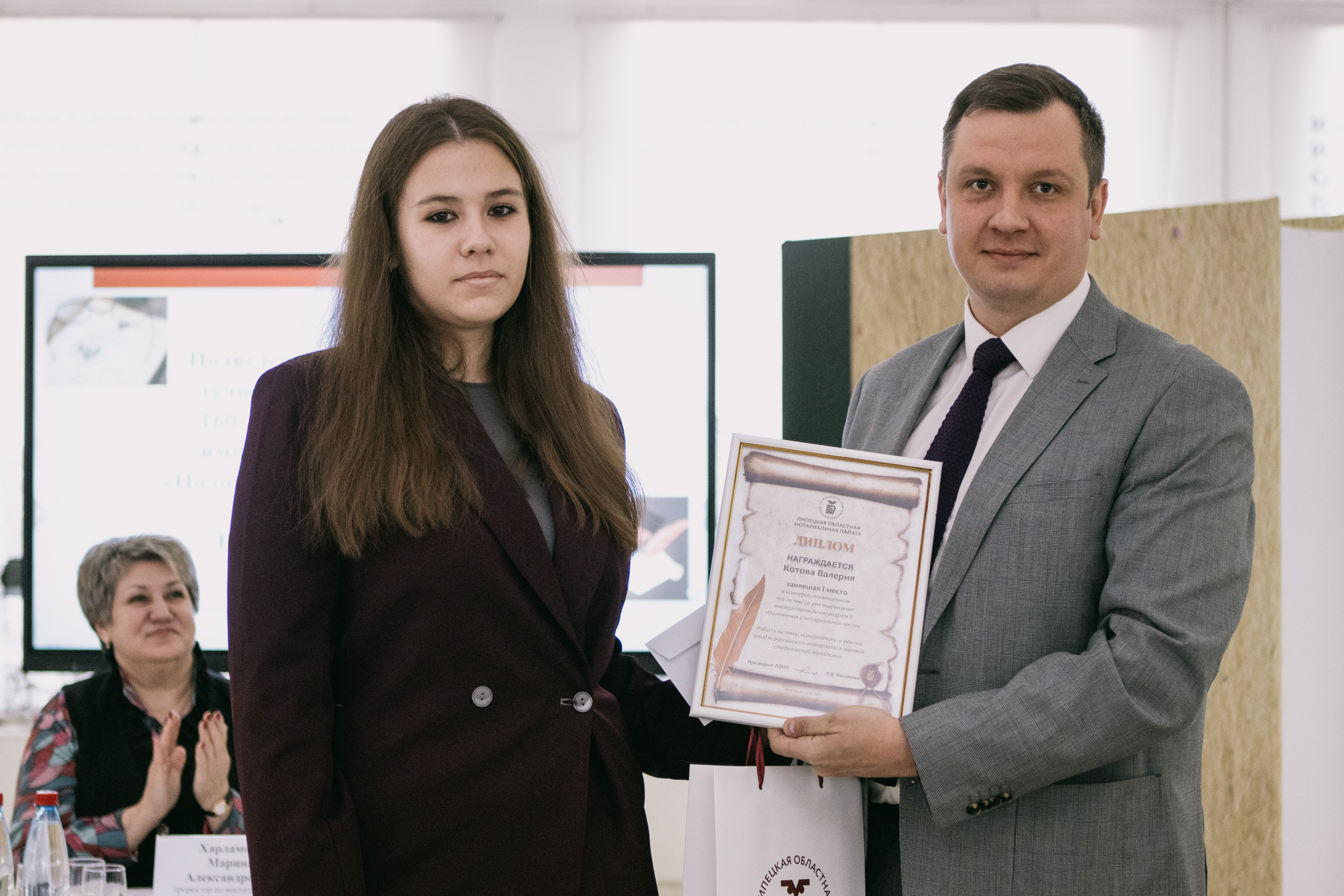 Конкурсная комиссия особо отметила работу Максима Суворова на тему: «Профессиональная этика нотариата». Заместитель начальника Управления Минюста России по Липецкой области поощрил Дарью Шарановуза работу на тему «Особенности развития нотариата в годы Великой Отечественной войны». Всем участникам были вручены дипломы и памятные подарки.