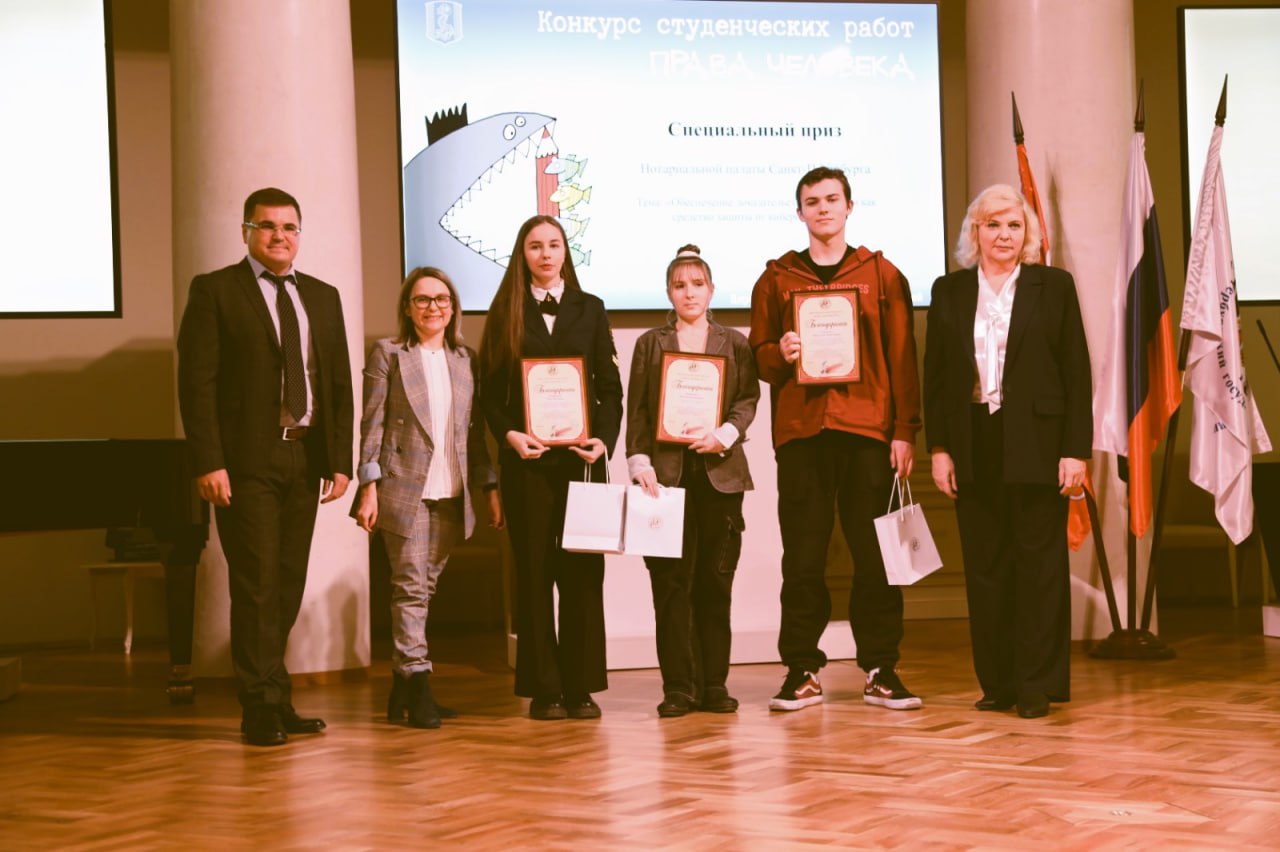 10 декабря в Северной столице, в здании Двенадцати коллегий состоялась торжественная церемония награждения победителей XII студенческого конкурса «Права человека», который проводит уполномоченный по правам человека в Санкт-Петербурге Светлана Агапитова. В этом году партнером конкурса впервые выступила Нотариальная палата Санкт-Петербурга.