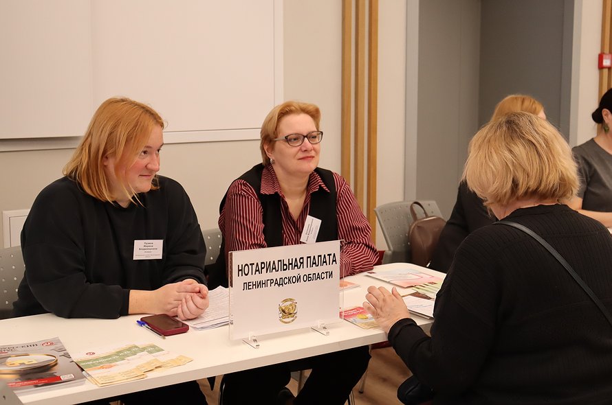 Среди представителей нотариата Ленинградской области в мероприятии участвовали нотариусы города Гатчины Марина Пузина и Анна Антипова, которые провели индивидуальные юридические консультации для всех желающих.