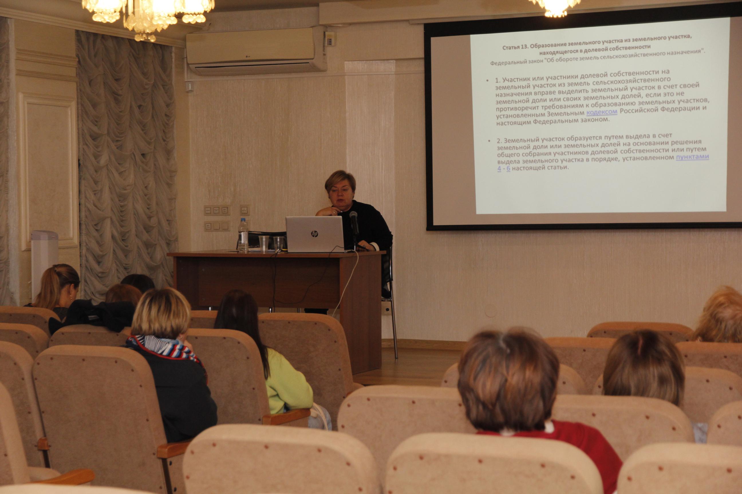 В ходе круглого стола была дана общая характеристика земельного законодательства Российской Федерации и рассмотрены вопросы, связанные с вещными правами на землю и их регистрацией.