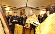 В этом году в связи с реставрационно-восстановительными работами в основном здании храма молебен совершался в храме, расположенном в нижнем этаже колокольни.