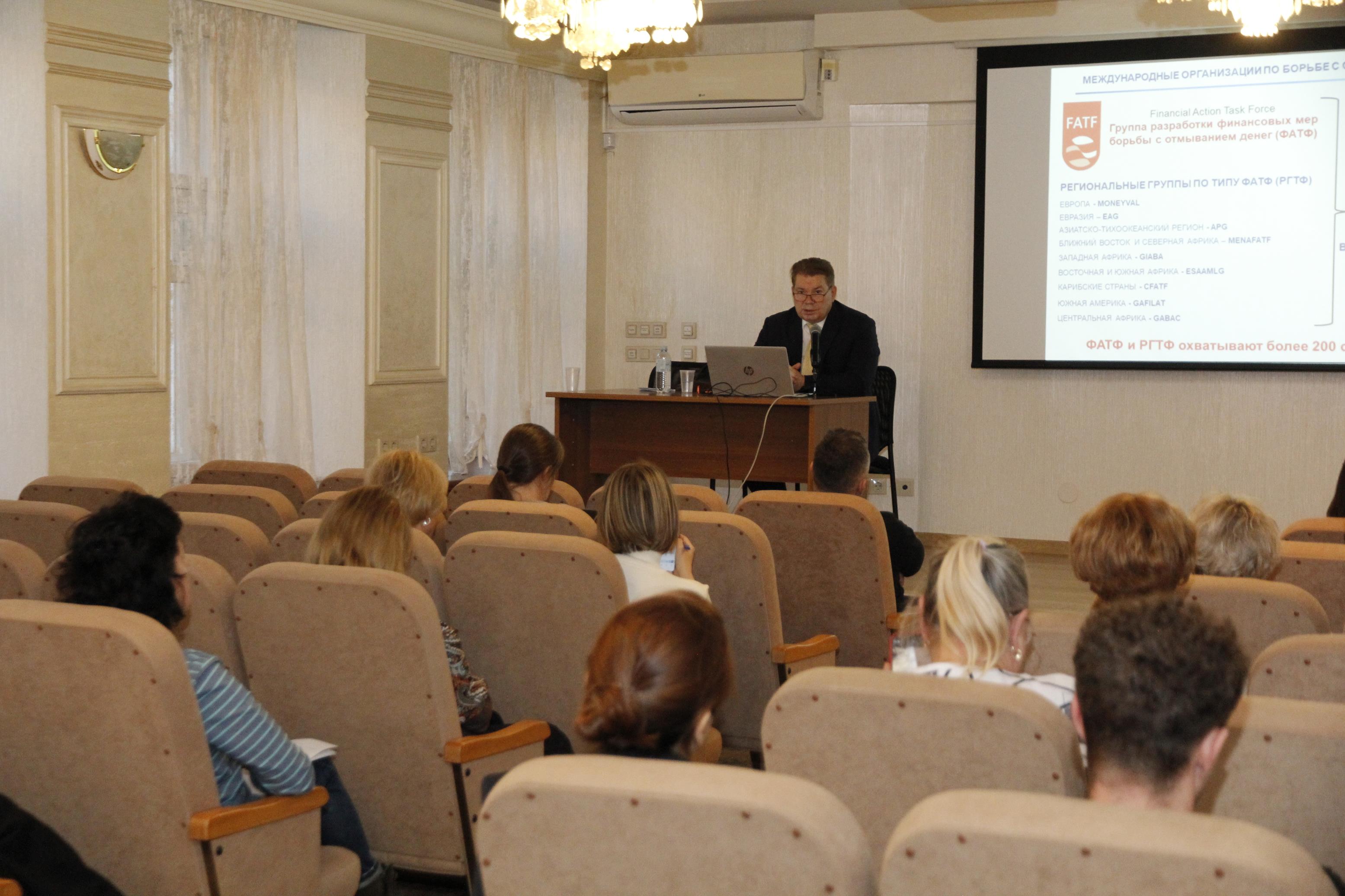 Организацией целевого инструктажа занимается комиссия МГНП по повышению профессиональной подготовки нотариусов. Дистанционный формат предусматривает просмотр видеолекции в Личном кабинете обучающегося на сайте АНО ДПО «Научно-методический Центр». Очное занятие провел заместитель руководителя Межрегионального управления Федеральной службы по финансовому мониторингу по Сибирскому федеральному Сергей Некрасов.