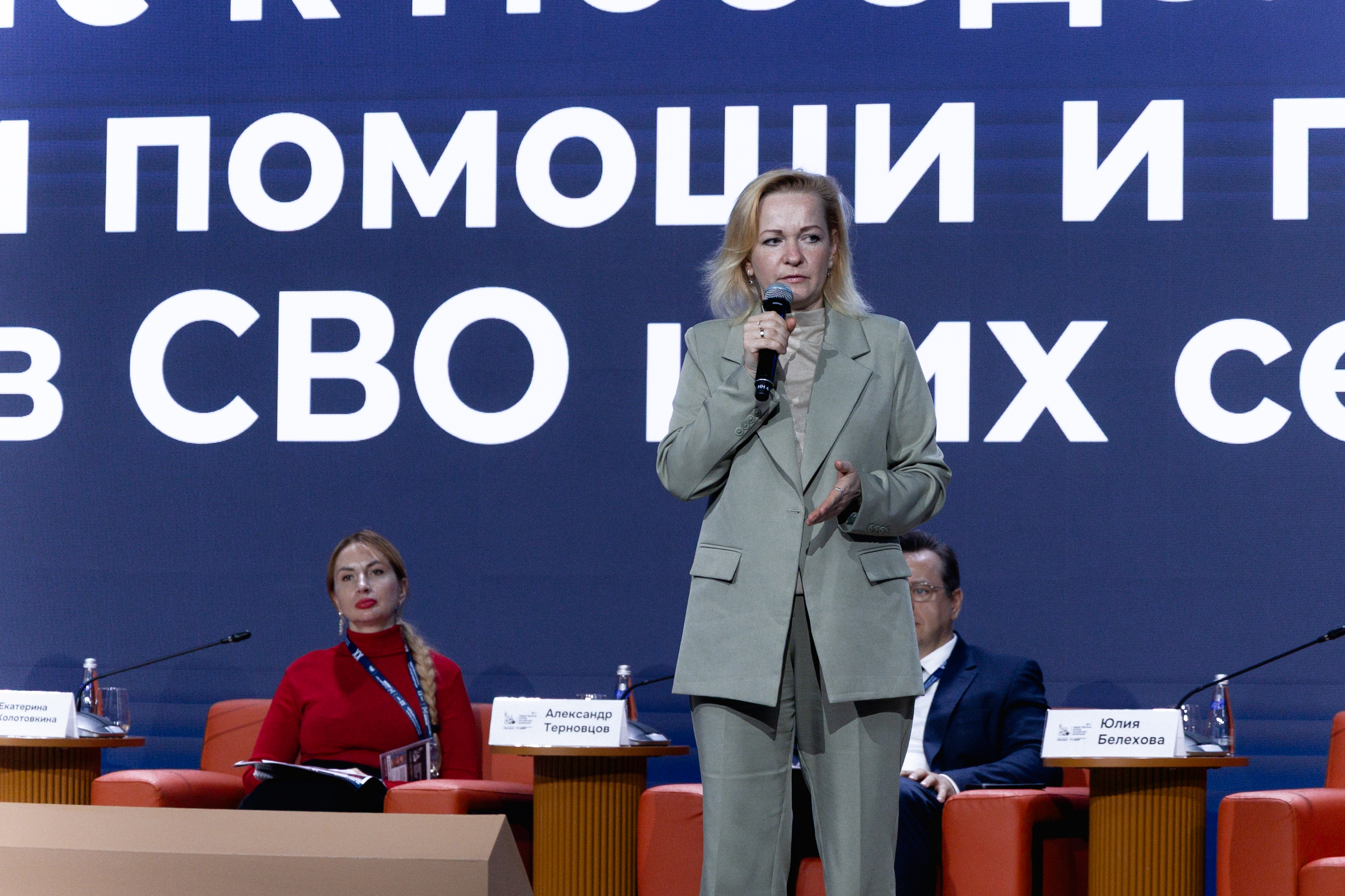 «Когда мы говорим про поддержку участников специальной военной операции и их семей, мы должны ее осуществлять фактически каждый день, каждый час», — отметила в своем выступлении руководитель КСВО, член Совета при Президенте РФ по развитию гражданского общества и правам человека Юлия Белехова.