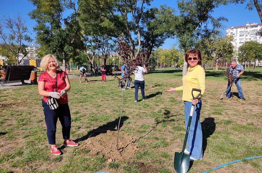 Президент Нотариальной палаты города Севастополя Ольга Каленкович вместе с членами Совета высадили 10 саженцев сливы Писсарди в сквере, расположенном по улице Николая Музыки в городе Севастополе.