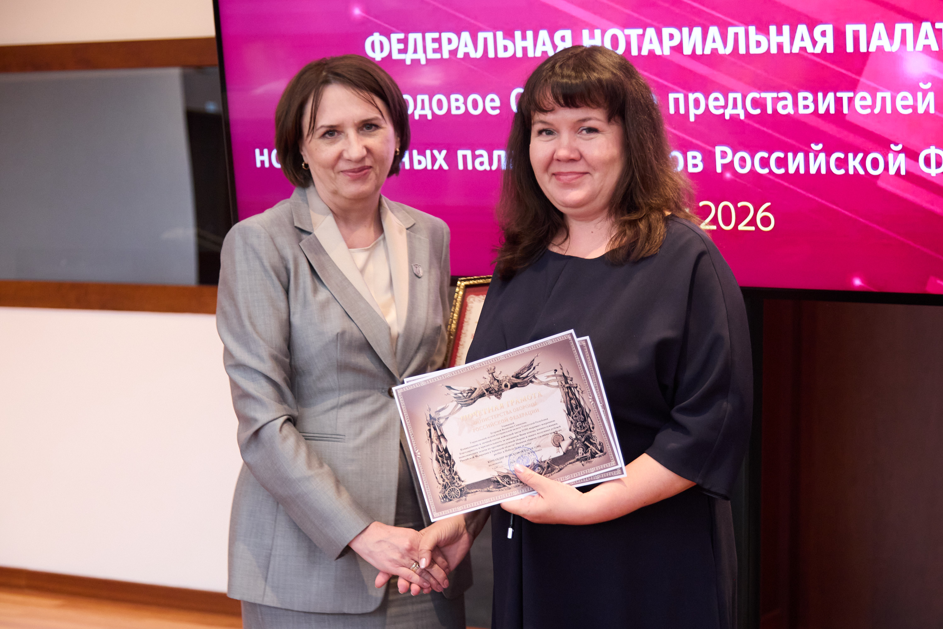 Завершающей частью мероприятия стала церемония награждения. Почетной грамотой ФНП за вклад в развитие российского нотариата были награждены члены Правления ФНП состава 2019-2026 гг.: Наталья Гончарова, Светлана Зылевич, Александра Игнатенко, Кирилл Лазорин, Галина Николаева, Мария Терехова, Марина Эдельштейн.