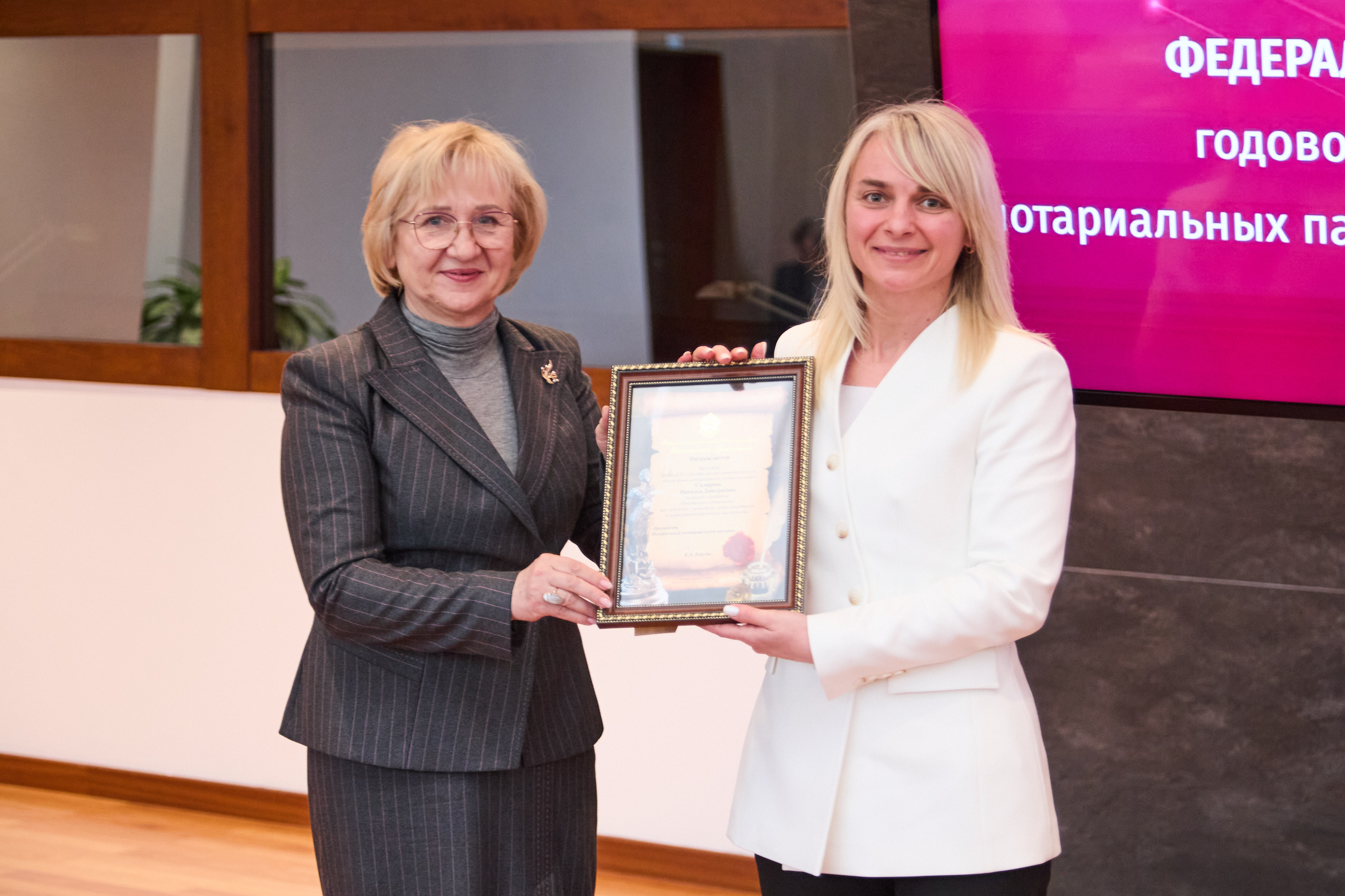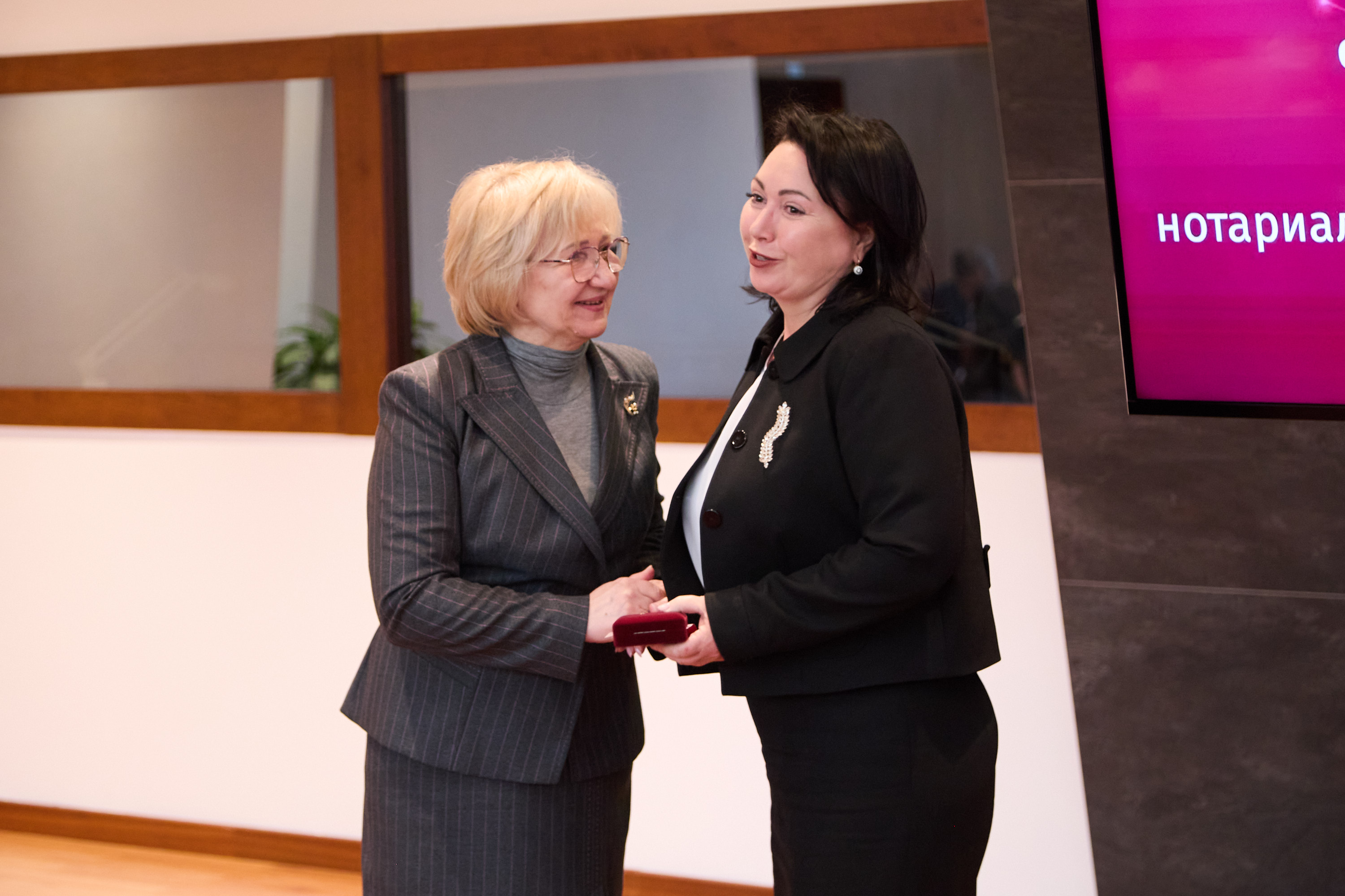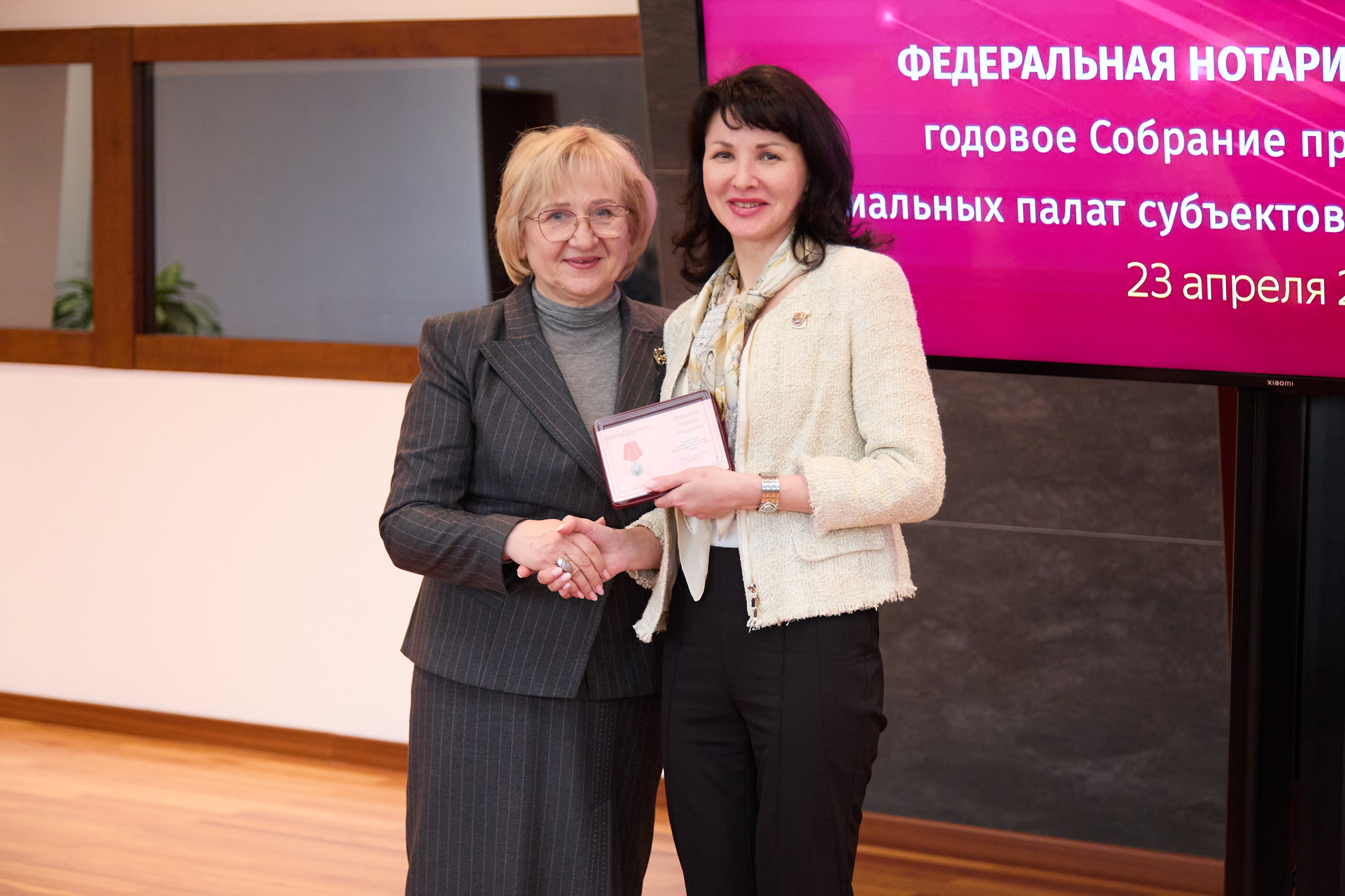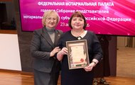 Медалью Юрия Иутина «За безупречное служение и верность профессии» были награждены президент Приморской краевой нотариальной палаты Наталья Егорова, президент Брянской областной нотариальной палаты Валентина Савельева.