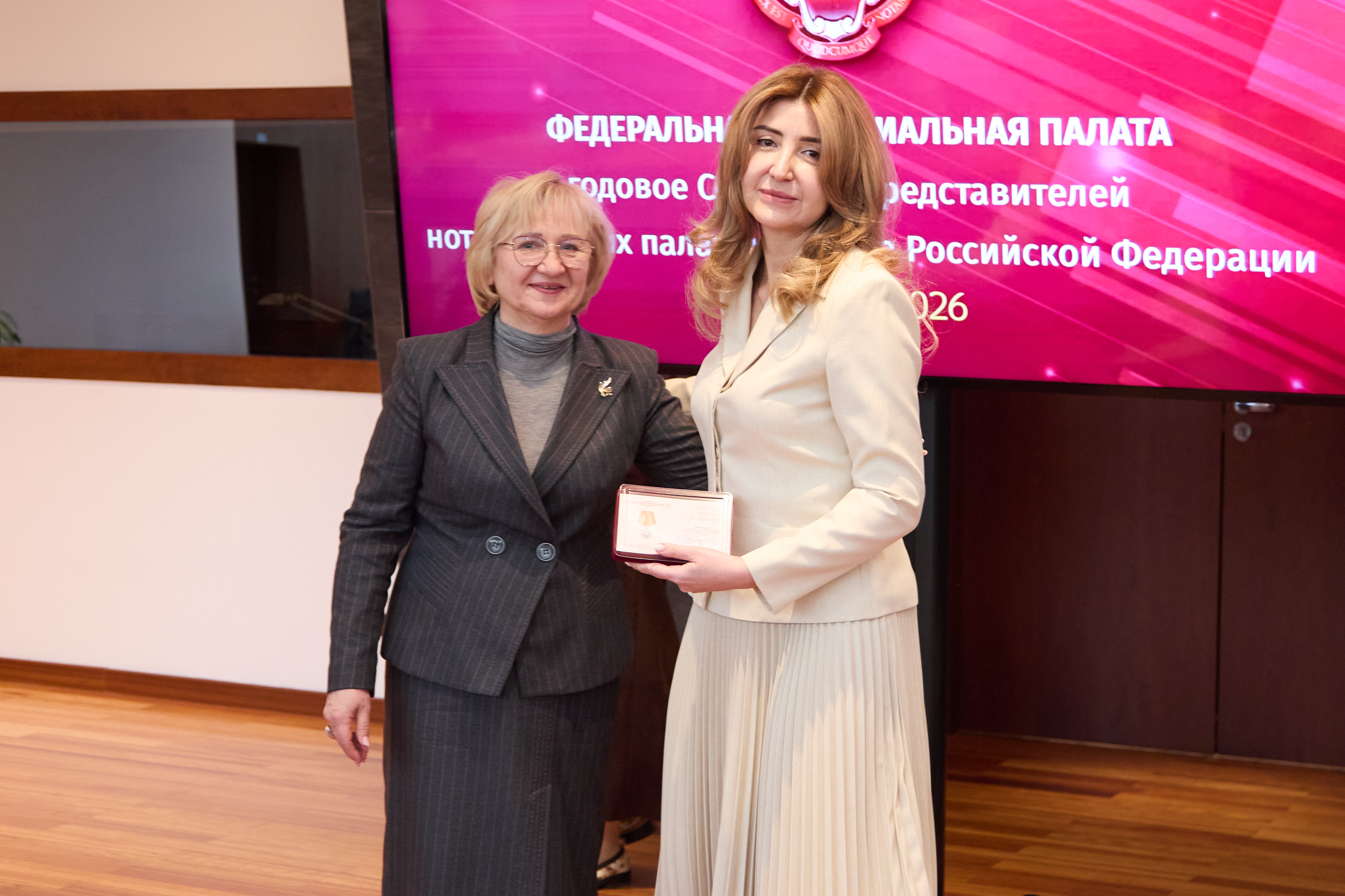 Медалью «За многолетний добросовестный труд в нотариате» 2 степени были награждены президент Нотариальной палаты Республики Северная Осетия-Алания Бэла Кисиева и президент Нижегородской областной нотариальной палаты Кирилл Лазорин.