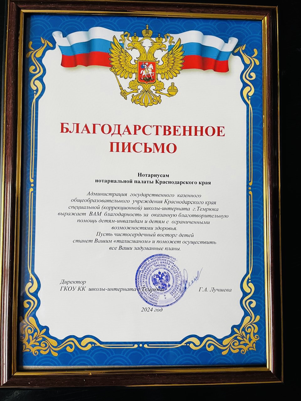 Совет молодых нотариусов Нотариальной палаты Краснодарского края провел ежегодную новогоднюю благотворительную акцию. На собранные во время акции средства были приобретены два ноутбука для ребят Ахтырского центра помощи детям, оставшимся без попечения родителей, а также микшер с усилителем и комплект микрофонов для ГКОУ КК специальной (коррекционной) школы-интернат г. Темрюка. Подарки были переданы нотариусами Краснодарского края Лидией Лагодиной и Сергеем Комышевым.