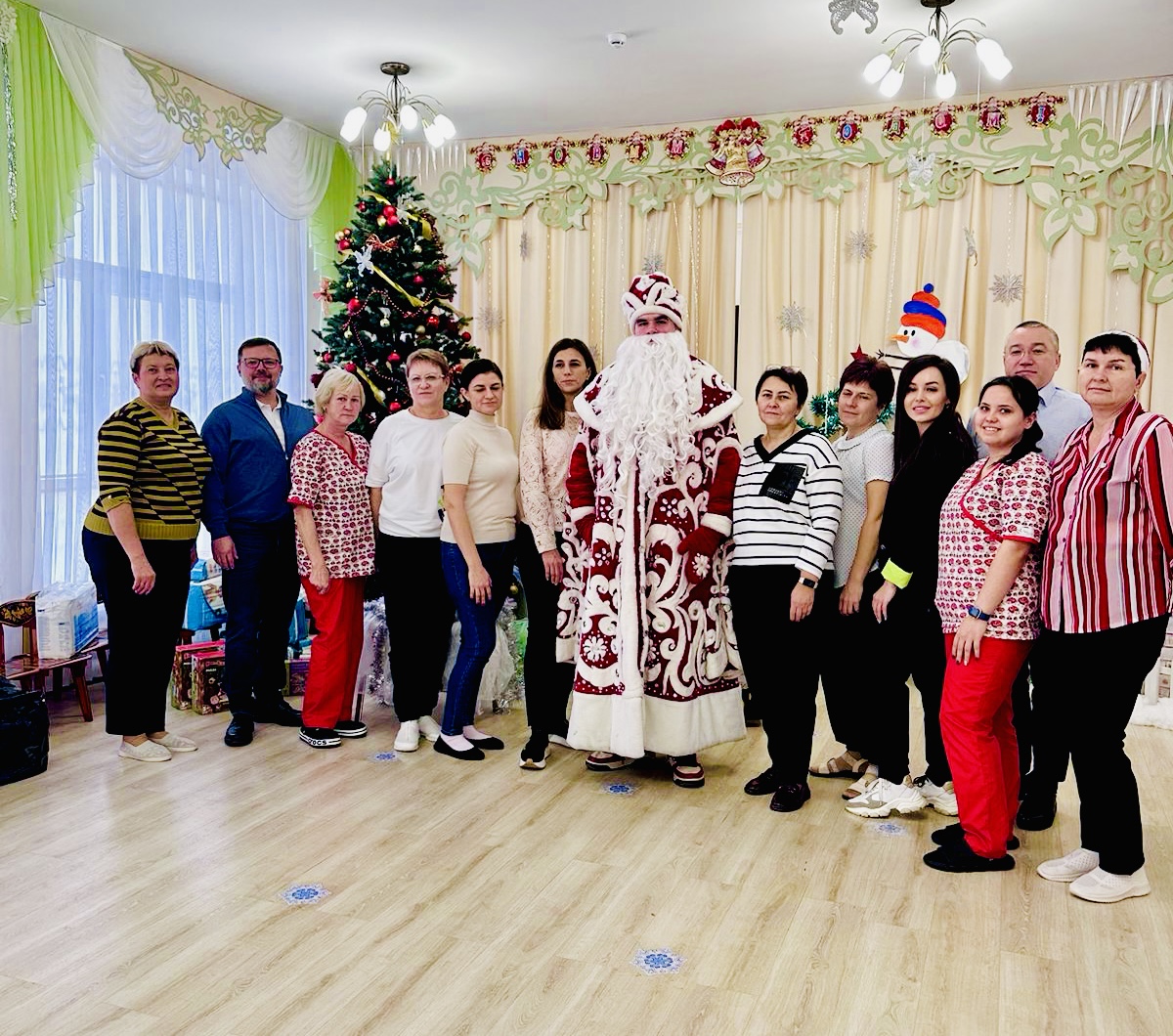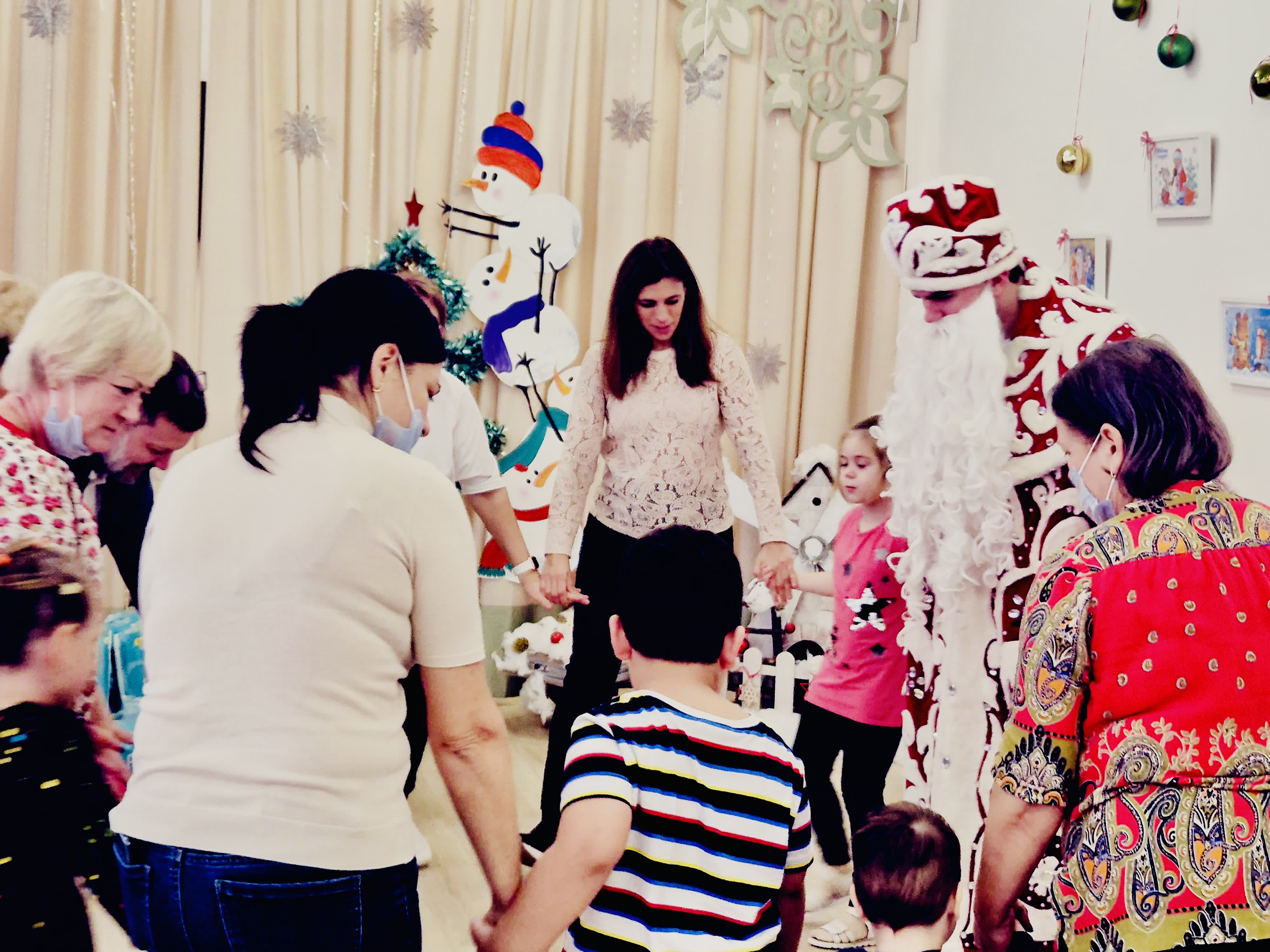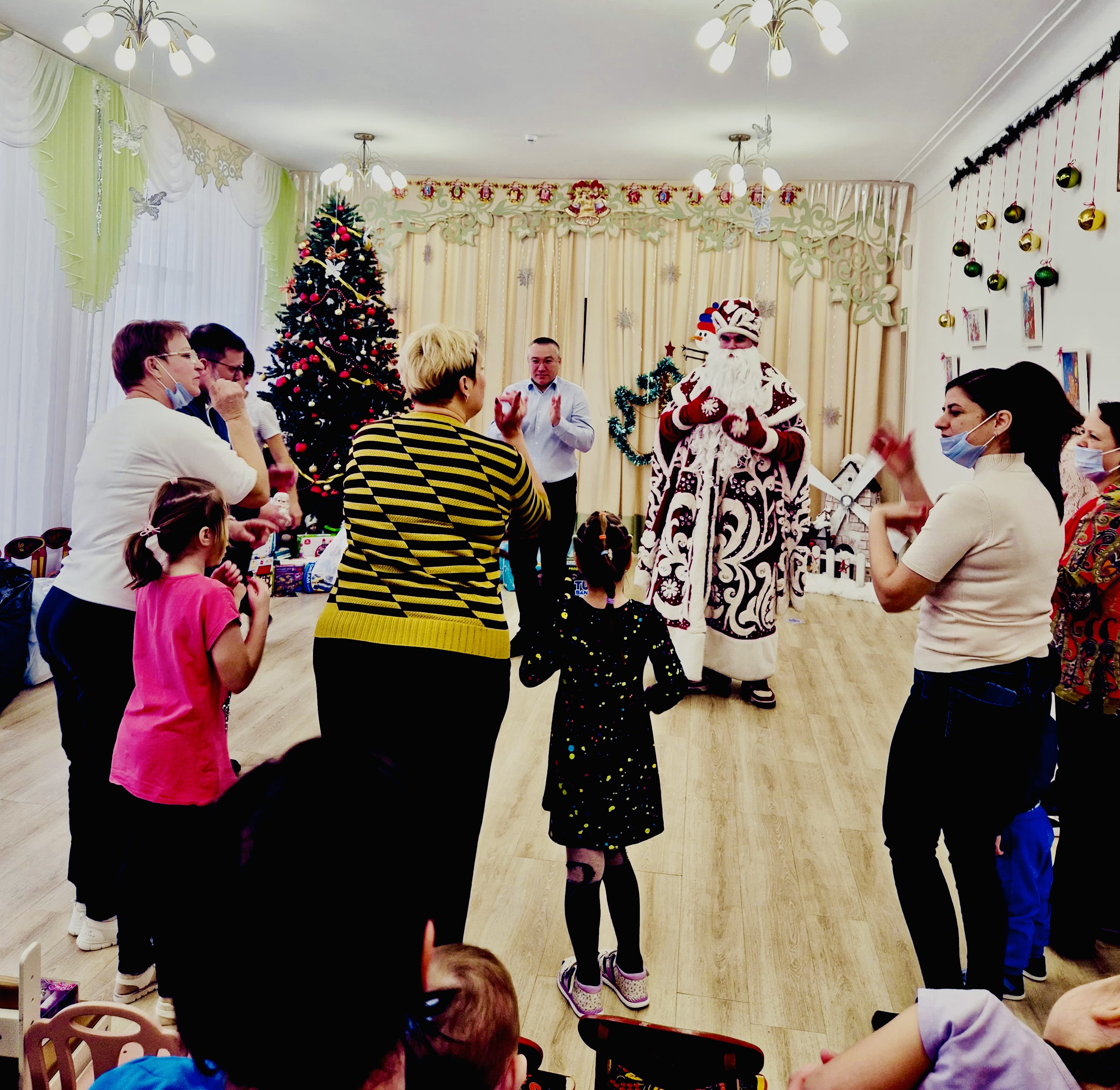 Было организовано небольшое представление, хороводы, танцы. Каждый ребенок получил подарок. Среди них — развивающие игрушки, боксерская груша с перчатками, наборы для творчества, памперсы, средства гигиены, дидактические игры, фрукты и другие необходимые вещи.