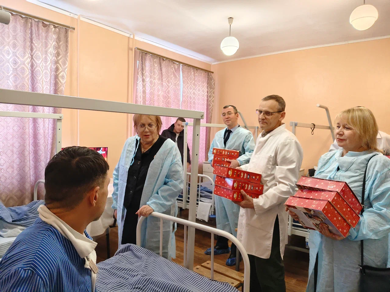 В сопровождении начальника госпиталя Сергея Яшина гости совершили обход военнослужащих, проходящих лечение в нейрохирургическом и травматологическом отделениях, поздравили их с наступающим Новым годом и Рождеством, вручили подарки, выслушали просьбы и пожелания, провели индивидуальные консультации.