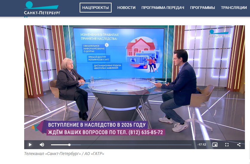 Глава нотариата Петербурга рассказала телезрителям о нюансах вступления в наследство