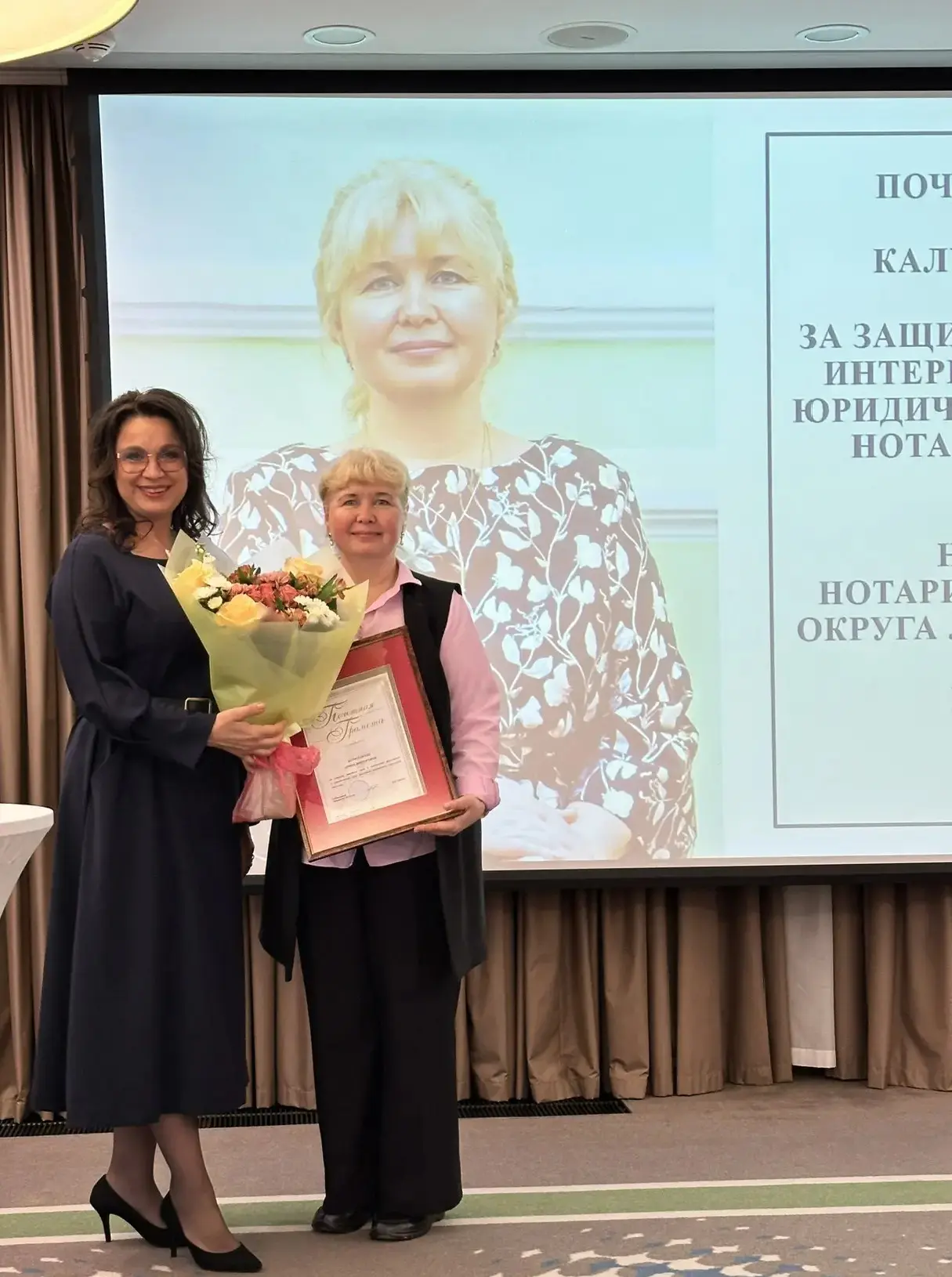 В ходе торжественной части состоялось награждение и чествование юбиляров. В частности, почетную грамоту губернатора Калужской области вручили нотариусу Людиновского района Ирине Борисенковой.