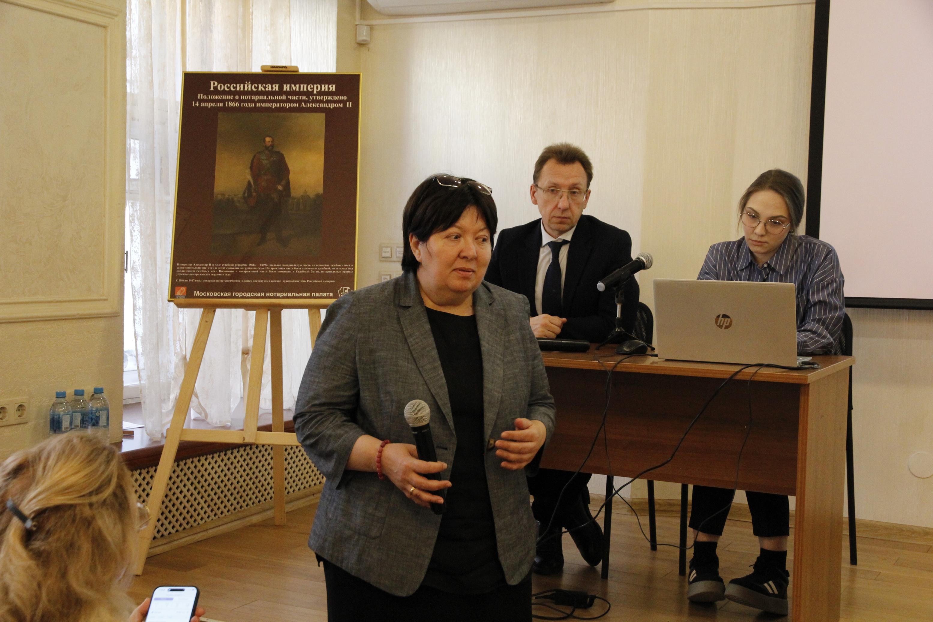 Научная дискуссия объединила московских нотариусов, преподавателей и аспирантов ведущих юридических вузов столицы. В выступлениях спикеров были представлены исследования на тему становления нотариата, появления и развития отдельных правовых механизмов и их связь с современными регуляторными нормами.