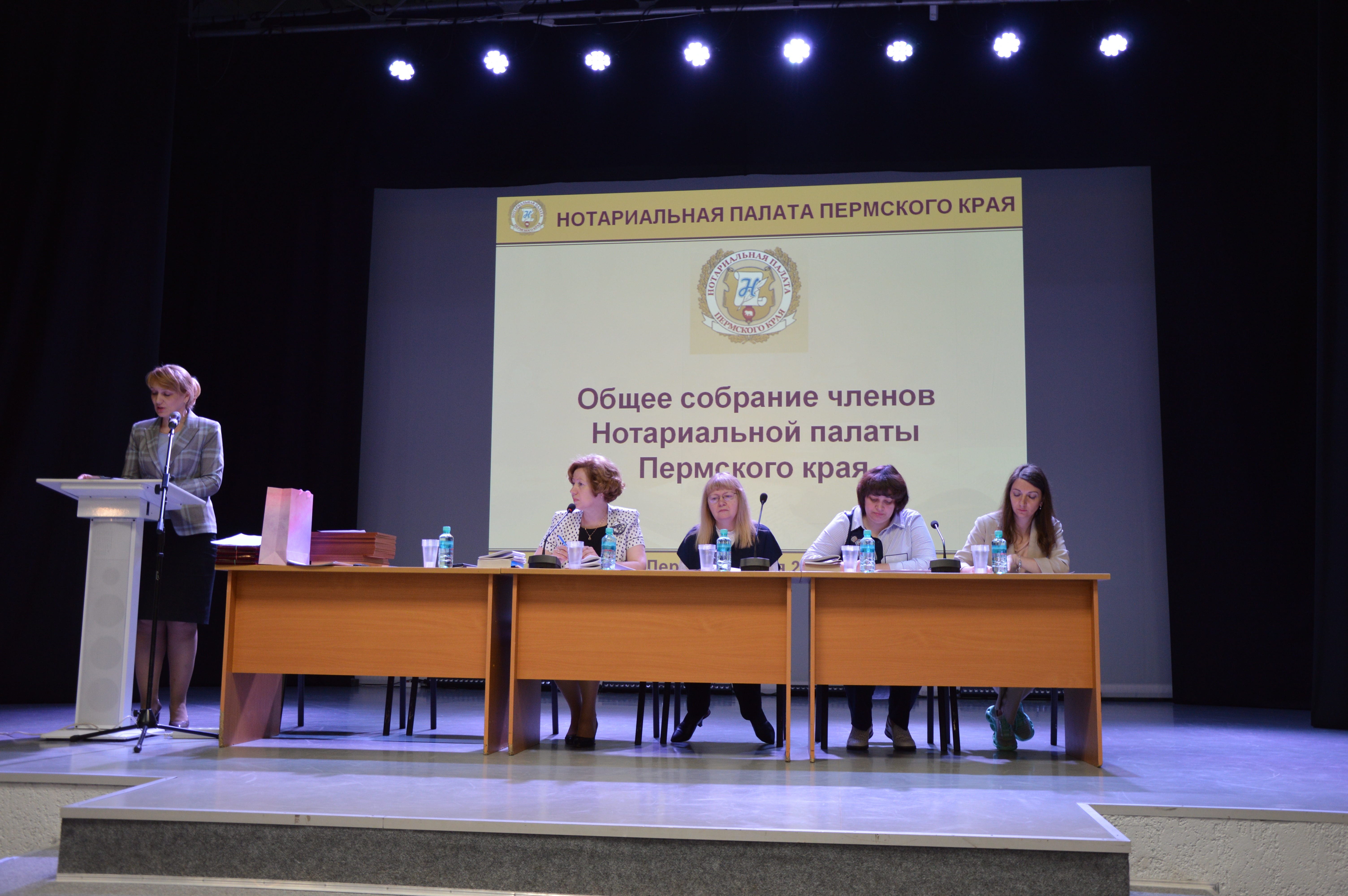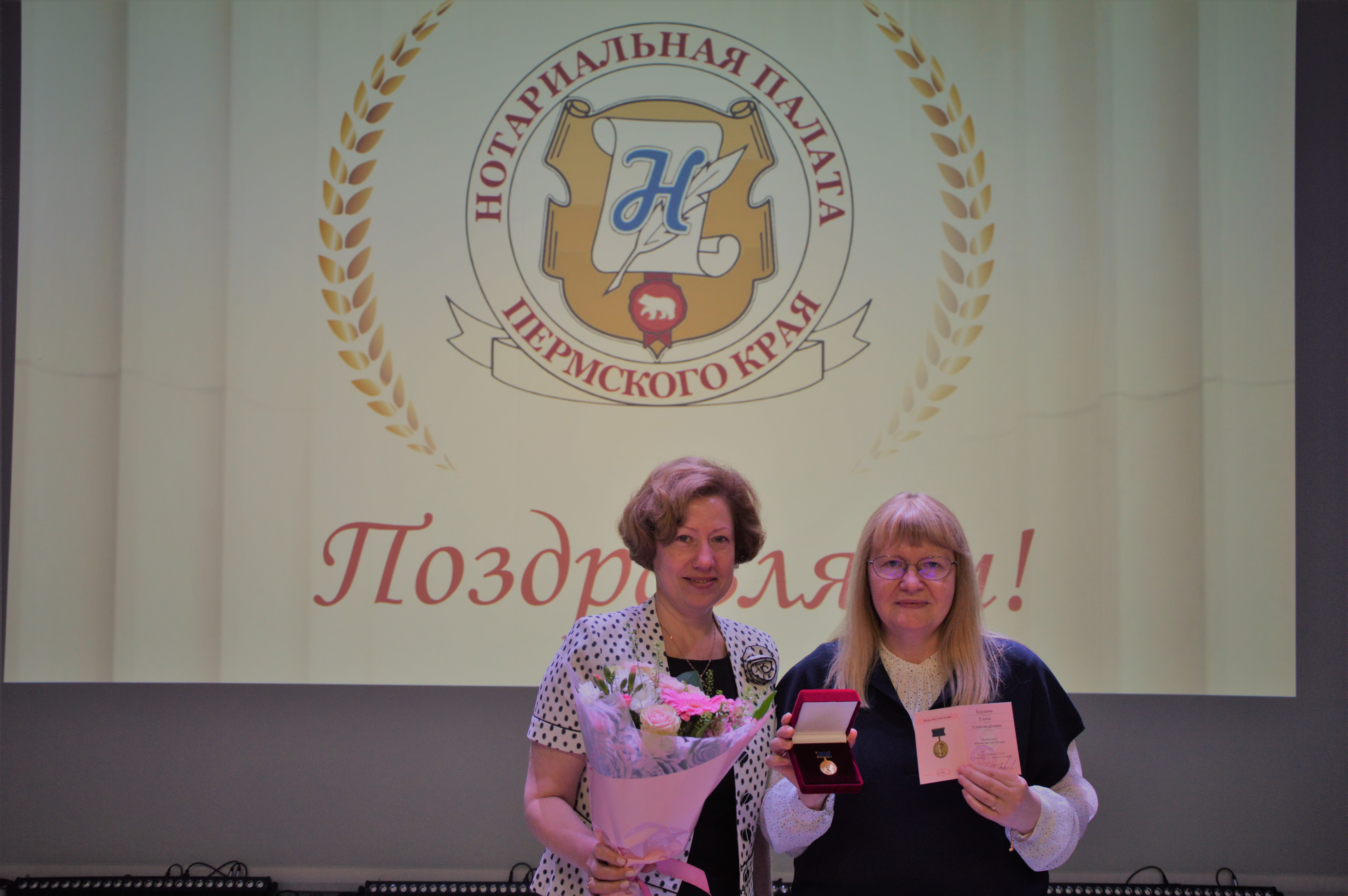 Торжественная часть собрания началась с демонстрации фильма «Нотариальная палата – новое время», посвященного 30-летию работы в нотариате нотариусов Пермского края. Также в ходе собрания присягу приняла вновь назначенный на должность в Пермском городском нотариальном округе нотариус – Татьяна Гусева. Нотариусам Прикамья были вручены благодарственные письма и медали Федеральной нотариальной палаты «За многолетний добросовестный труд в нотариате» I, II и III степеней, почетные грамоты и благодарственные письма Нотариальной палаты Пермского края.
