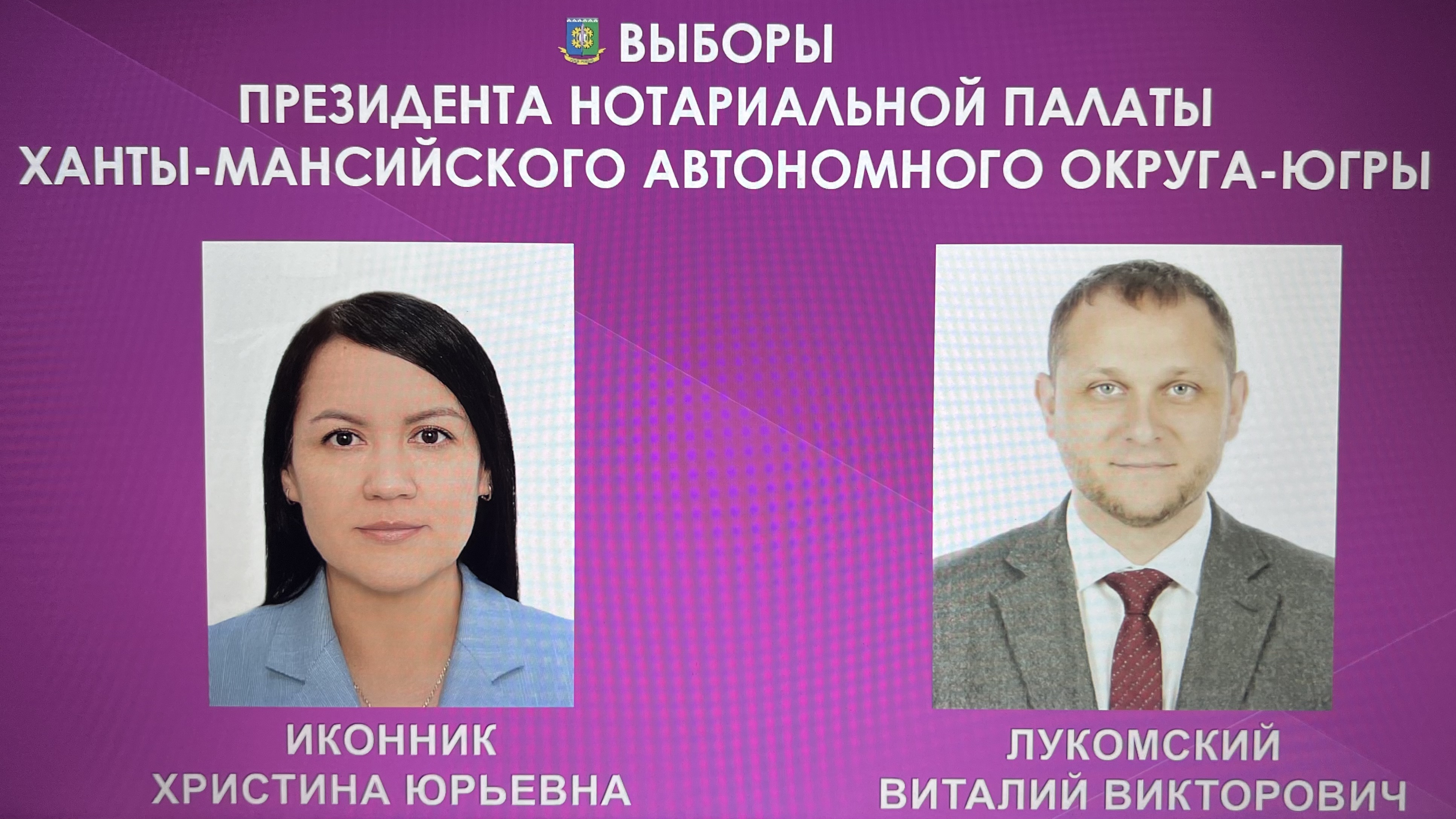 На руководящую должность были выдвинуты два кандидата - действующий президент палаты, нотариус города Сургута Христина Иконник и член правления, нотариус города Нижневартовска Виталий Лукомский.