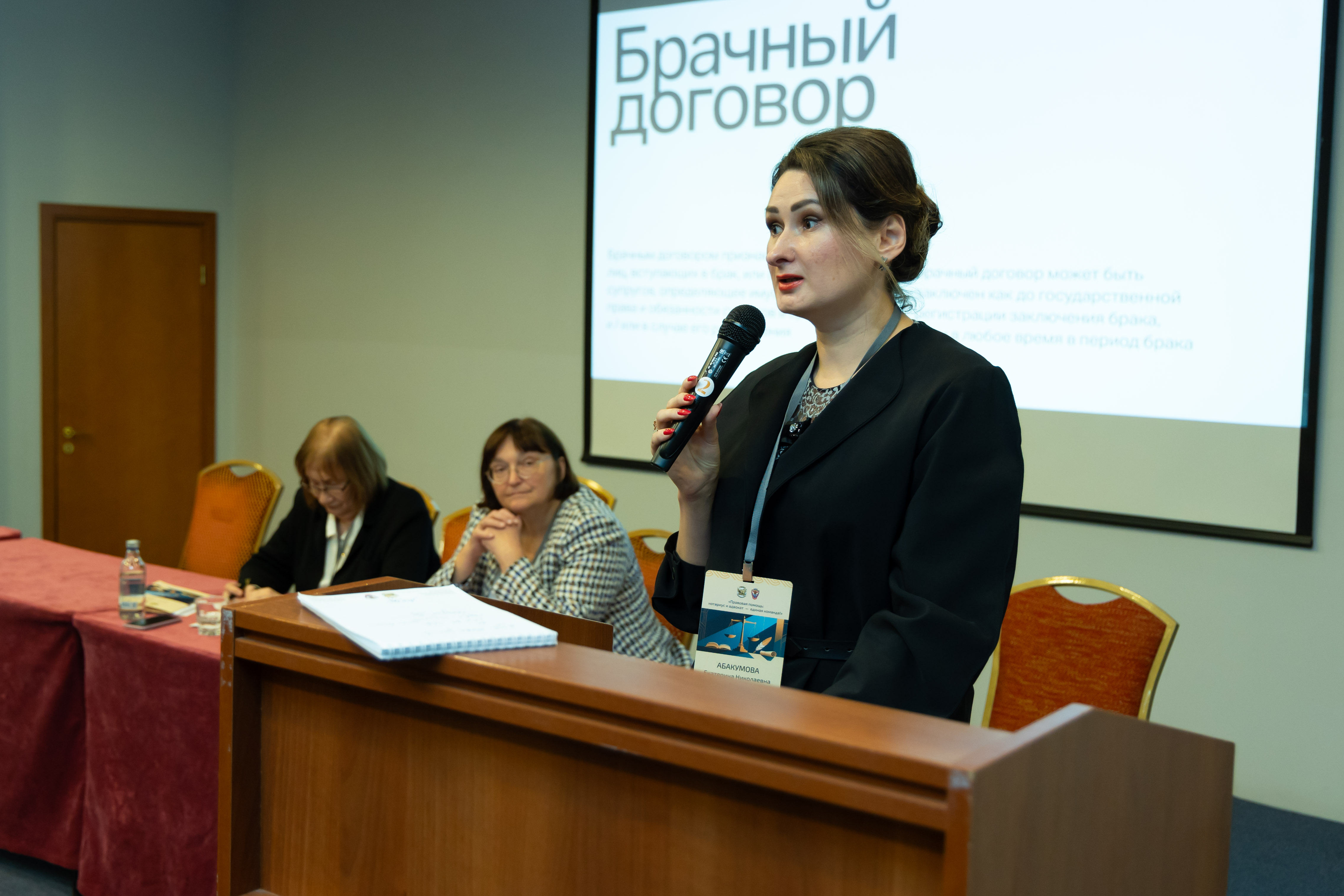 Член Совета Адвокатской палаты Ленинградской области и Комиссии по правовому просвещению Екатерина Абакумова выступила с докладом «Брачный договор. Основание и риски оспаривания в суде».